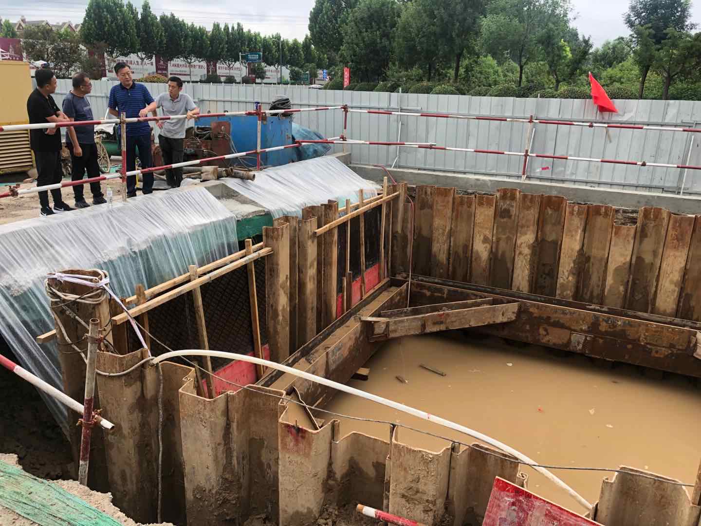 根據(jù)氣象部門暴雨紅色預(yù)警,濟寧地區(qū)未來一周還會有連續(xù)降雨。李聲播副書記指示各有關(guān)部門和工作人員務(wù)必做好工地積水的排水工作,完善施工作業(yè)面保護和溝槽的防汛措施,搶抓施工進度,確保施工安全,安排好防汛值班工作,做好管道周邊泥土的處理及施工坑道的恢復(fù)工作。切實加強對防汛工作的組織領(lǐng)導(dǎo),強化落實防汛責任制,組建防汛搶險隊伍,增強對突發(fā)事件的快速應(yīng)變能力,保證在緊要關(guān)頭拉得出、搶得上、守得住。同時狠抓汛前度汛設(shè)施隱患排查,積極做好入汛以來的各項準備工作,為項目安全度汛奠定堅實基礎(chǔ)。