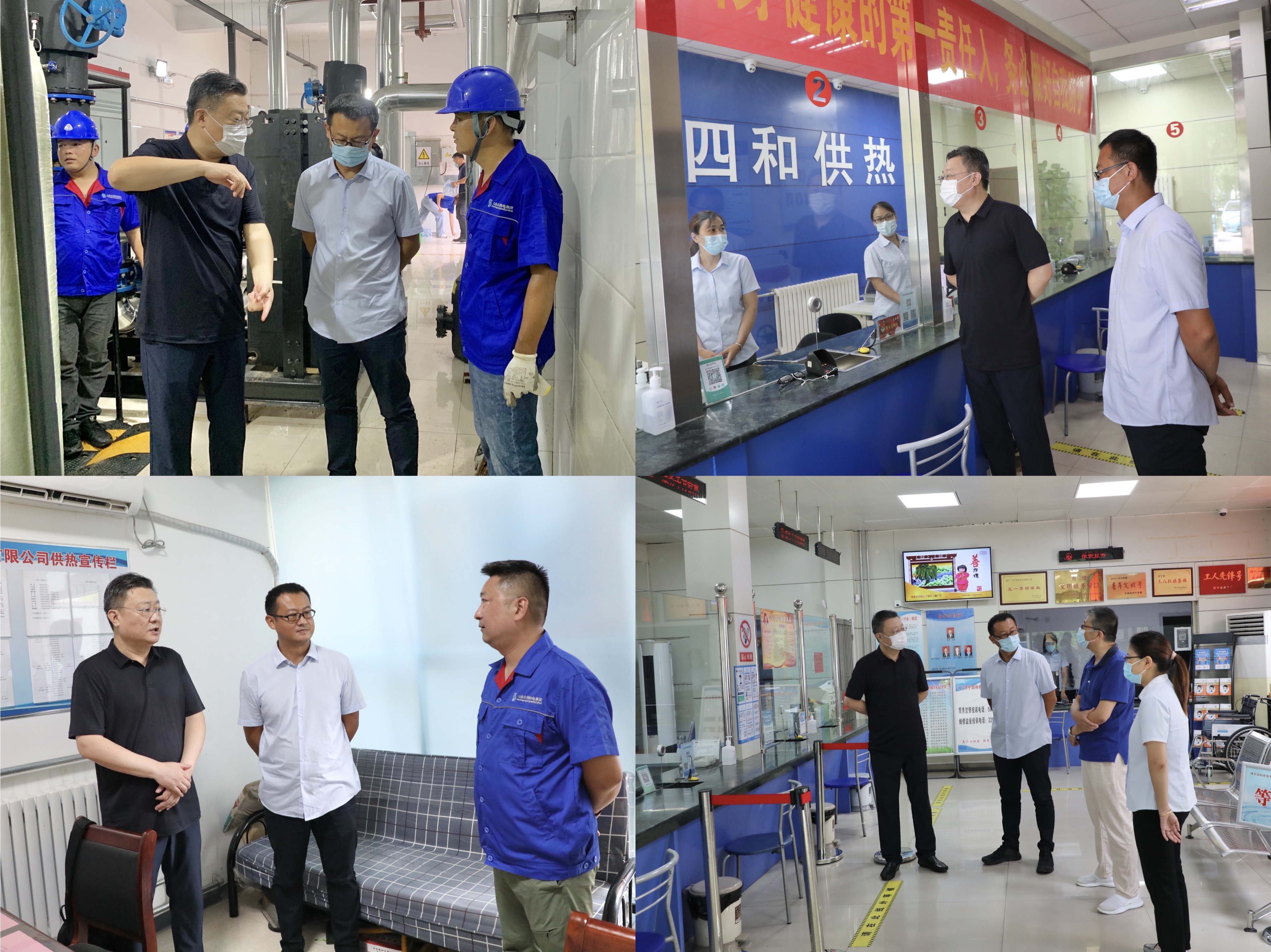 李聲播一行先后看望慰問了共青團(tuán)營(yíng)業(yè)廳、南池營(yíng)業(yè)廳全體工作人員,以及正在電業(yè)局換熱站清理機(jī)組板換和水韻城分發(fā)繳費(fèi)通知的戶外作業(yè)人員。每到一處,李聲播都親切地詢問現(xiàn)場(chǎng)工作人員的生產(chǎn)生活和勞動(dòng)安全情況,反復(fù)叮囑大家在做好個(gè)人防護(hù)的同時(shí)注意防暑降溫,保護(hù)自身安全,扎實(shí)做好應(yīng)對(duì)高溫天氣的應(yīng)急處置與安全保障工作,確保一線職工的身體健康和工作安全。李聲播在活動(dòng)中指出,連日來,持續(xù)出現(xiàn)高溫天氣,四和供熱公司廣大職工冒高溫、戰(zhàn)酷暑,始終奮戰(zhàn)在疫情防控、“冬病夏治”、采暖費(fèi)預(yù)收各項(xiàng)工作第一線,充分展現(xiàn)四和供熱人奮發(fā)作為的精神風(fēng)貌和務(wù)實(shí)肯干的工作作風(fēng)。公司廣大職工要做好自我調(diào)節(jié),克服酷暑高溫,以飽滿的精神狀態(tài)堅(jiān)守崗位、接受“烤”驗(yàn),全力以赴高效推進(jìn)當(dāng)前各項(xiàng)重點(diǎn)工作。